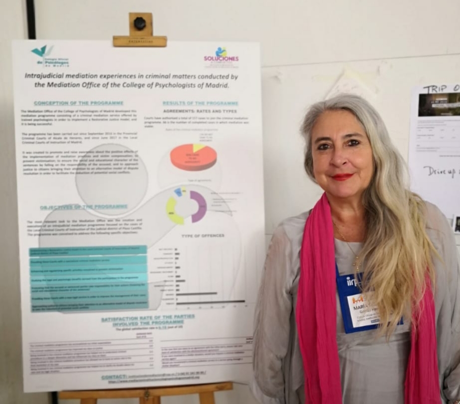 María de Rocío Gómez presentó en ambos eventos los resultados del Programa de Mediación Intrajudicial en el Ámbito Penal que actualmente está siendo desarrollado por la Institución de Mediación del Colegio Oficial de la Psicología de Madrid.
